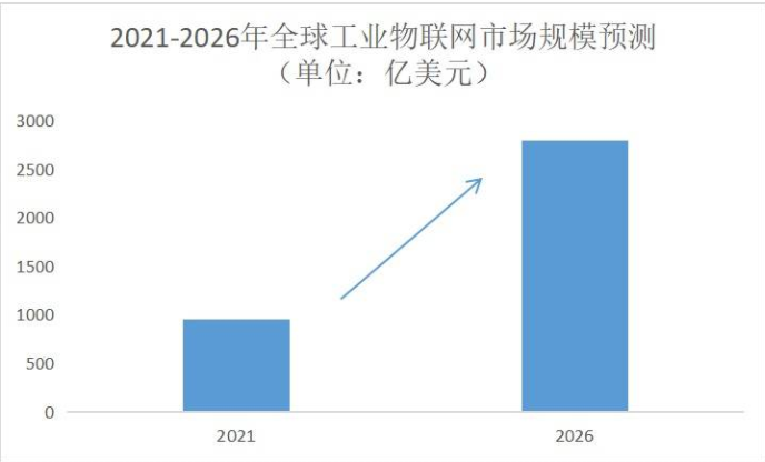 据市场调查网发布的《2022-2026年碳交易下中国工业物联网产业投资及市场前景研究报告》显示,工业物联网是物联网的重要组成部分,近年来,工业物联网市场规模不断扩大,2021年,全球工业物联网市场规模达到960亿美元以上,预计2026年将增长至2800亿美元。我国是制造业大国,在《中国制造2025》战略背景下,制造业智能化转型速度加快,工业物联网市场发展空间广阔。