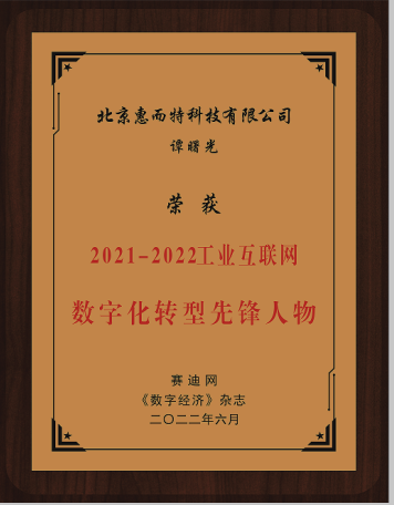 大会同步发布了《2022年中国工业互联网十大趋势》及2021-2022年度互联网产业生态创新优秀成果等奖项,北京惠而特科技有限公司创始人、董事长兼首席执行官谭曙光获评“2021-2022工业互联网数字化转型先锋人物”。