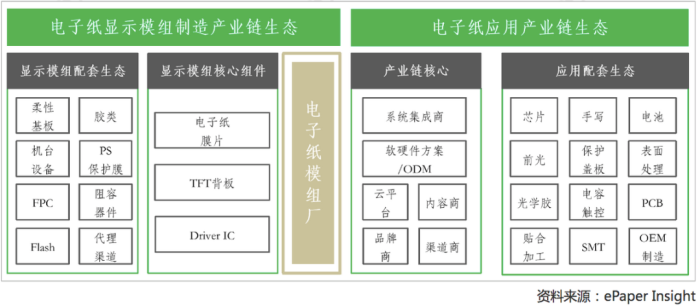 经过20余年的发展,电子纸作为一种新型显示技术,其产业生态已经初具规模,形成了电子纸制造与应用两大生态体系。