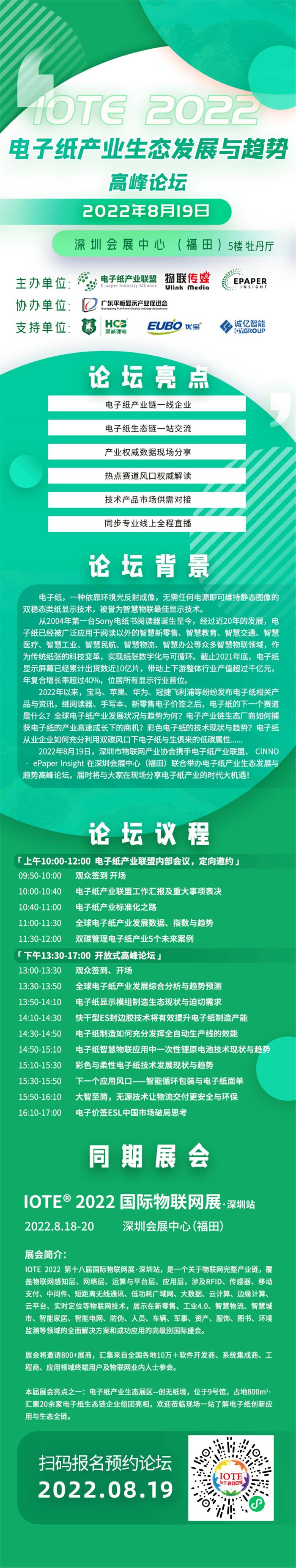 2022年8月19日,深圳市物联网产业协会携手电子纸产业联盟、CINNO•ePaper Insight将联合举办电子纸产业生态发展与趋势会议!