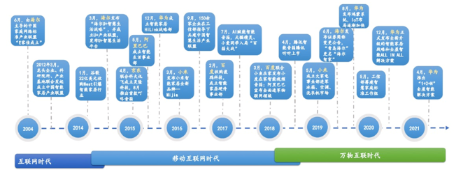 (国内巨头公司布局智能家居时间轴,数据来源:艾瑞咨询,国泰君安证券研究)