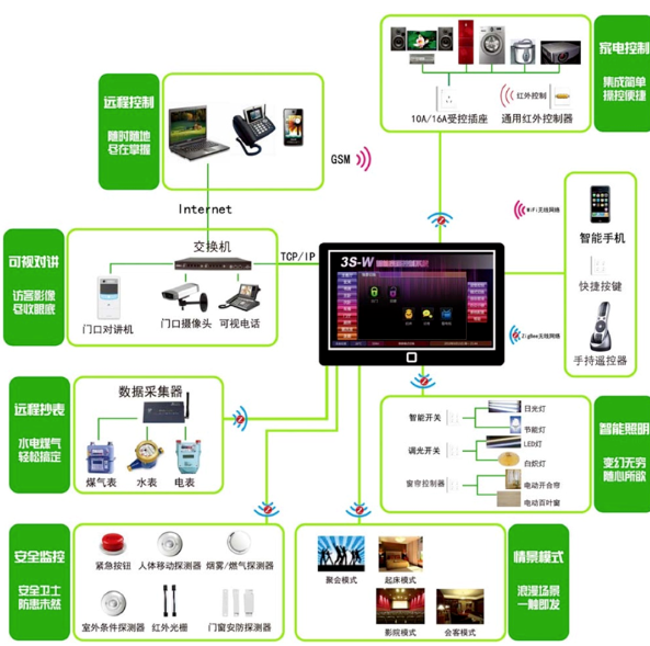 简单来说,智能家居就是通过各种技术手段,在家中实现人与设备、设备与设备之间的交互联通。如下图所示,这是典型的智能家居系统的原理图。