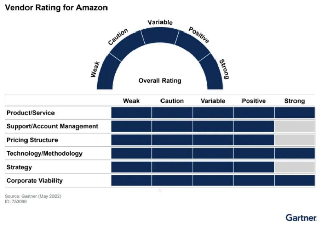 每年,市场研究权威机构Gartner都会甄选一些技术供应商,并发布供应商评级报告。Gartner会从产品/服务、支持/账户管理、定价、技术/方法、战略和企业生命力六个关键领域对供应商进行评级,而这也是企业选择云服务商时参考的关键标准和重要依据。