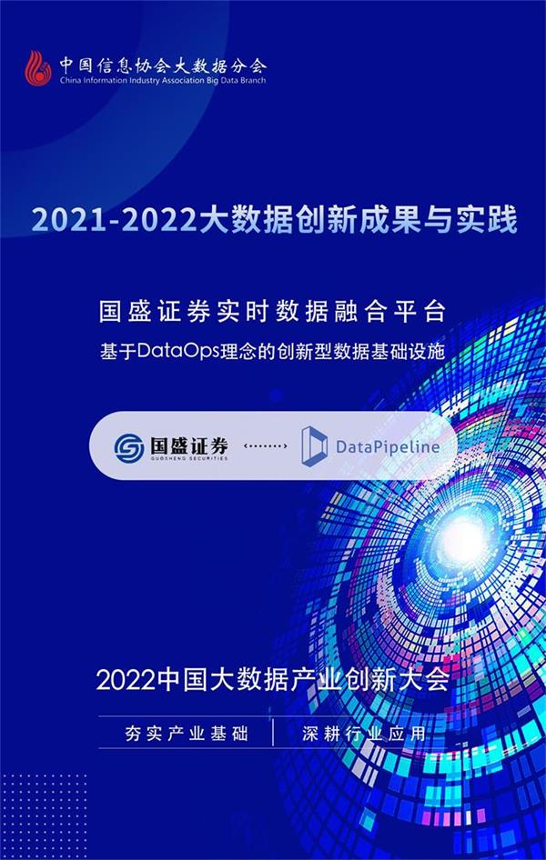 近日,由中国信息协会大数据分会主办的“2022中国大数据产业创新大会”在北京圆满落幕。500余位政产学研企各领域的专业人士参会,就推动中国大数据产业的创新发展进行深入剖析。大会重磅发布“2021-2022大数据创新成果与实践”,「DataPipeline助力国盛证券构建的实时数据融合平台」案例成功入选。