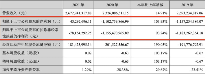 需要指出的是,2019年、2020年,高新兴分别亏损11.57亿元、11.03亿元。虽然2021年实现同比扭亏,净利润为4329万元,然而盈利主要受非经常性损益对净利润的影响巨大,非经常性损益项目及金额为1.21亿元。其中,处置星联天通、摩吉智行产生的投资收益就高达7046万元,扣非后亏损7815万元,且扣非后连续三年存在亏损的局面。