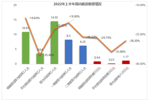 “国家统计局”数据显示,上半年,全国居民人均可支配收入18463元,比上年同期名义增长4.7%。虽然居民收入增长,且教育文化娱乐支出也呈现增长趋势,为中国文旅产业的发展奠定了良好的基础,但上半年国内多地暴发疫情,还是打乱了旅游市场复苏节奏,旅游人次、旅游收入等核心数据骤降。