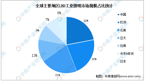 从目前的工业照明领域来看,数据显示,全球LED照明市场大约500亿英谤,其中工业领域市场占比约7%,LED的渗透率不足10%,如按渗透率10%测算,全球工业领域照明市场规模约350亿英锈(约合人民币3200亿元)。据LEDinside数据显示,中国LED照明规模占全球比重约22%,以此测算我国工业照明市场规模约700亿元人民币,国外工业照明市场规模约为2500亿元人民币。