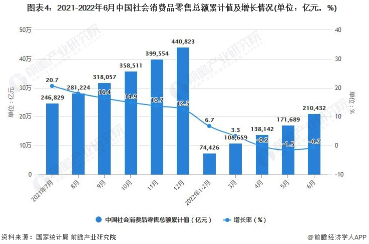 2022年上半年中国社会消费品零售总额突破20万亿元