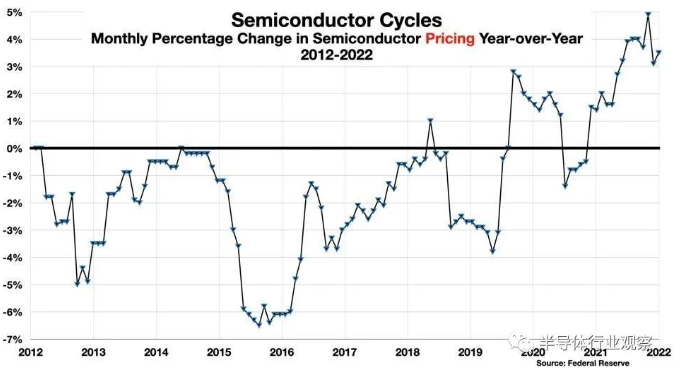 图3:2012-2022年半导体价格的变化百分比
