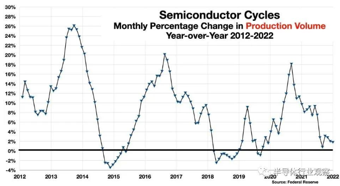 图2:2012-2022年半导体销量的同比变化百分比