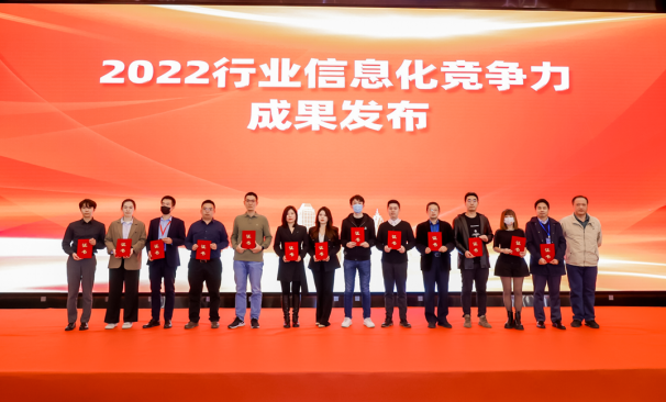 图:《2022行业信息化竞争力百强-2022行业信息化推优成果》艾伯信创领奖现场