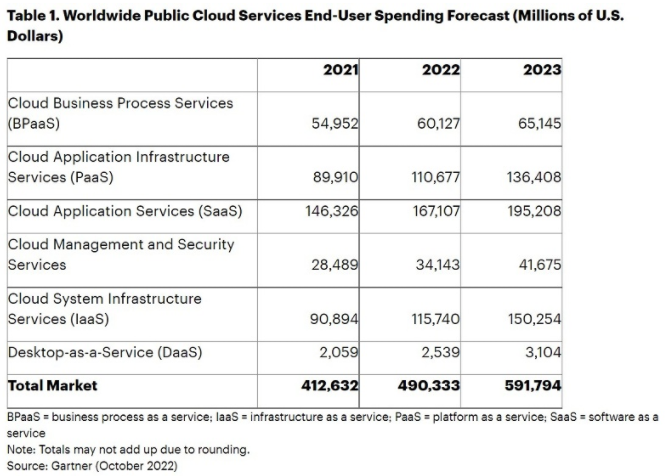 根据Gartner的最新预测,到2023年全球最终用户在公共云服务上的支出预计将增长20.7%,达到5918亿美元,高于2022年的4903亿美元。
