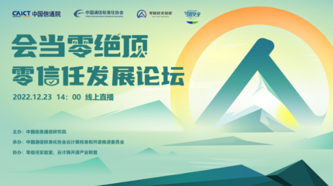 2022年12月23日下午14:00,由中国信息通信研究院(以下简称:中国信通院)主办,中国通信标准化协会云计算标准和开源推进委员会承办,零信任实验室、云计算开源产业联盟支持的“会当零绝顶·零信任发展论坛”成功召开!会上发布了可信安全·零信任安全能力评估结果、安全守卫者计划·零信任优秀案例、《零信任发展洞察报告》等多项成果,并邀请多位知名企业代表和技术专家围绕零信任发表了主题演讲,为行业从业者带来更具实践价值的参考。