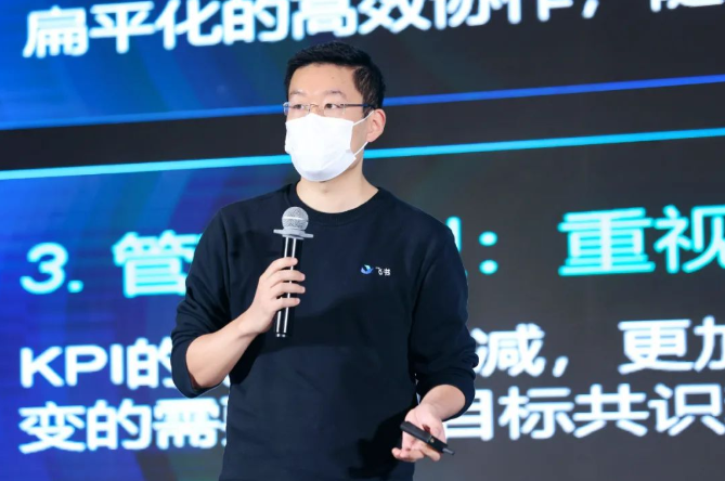 飞书解决方案北区负责人李悦,分享了他对金融业组织数字化的观察与思考,李总认为飞书可有效助力金融企业实现三重升级:战略更落地、组织更强大、管理更高效,通过为金融企业打造数字化底座,帮助企业数字化有效高质量落地。