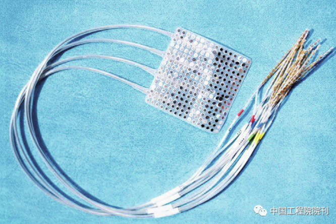 图4.美国加利福尼亚大学旧金山分校医学中心团队选择利用的皮层脑电图植入物,由256个电极组成(呈正方形,边长为6 cm,位于大脑表面),无需穿透大脑组织便能解码接受手术治疗的癫痫患者的语言,由此辨别发病机理。来源:UCSF/Noah Berger(public domain).