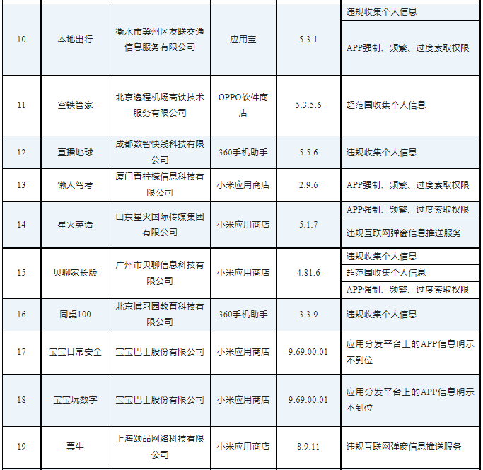 附件:工业和信息化部通报存在问题的APP(SDK)名单