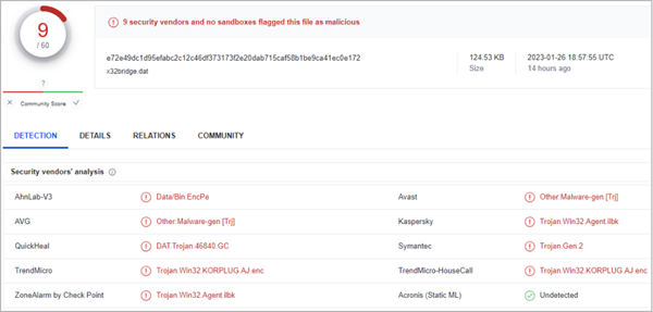 撰写本文时,Virus Total扫描平台上的大多数防病毒引擎都并未将该文件标记为恶意文件,61个产品中只有9个检测出了它。