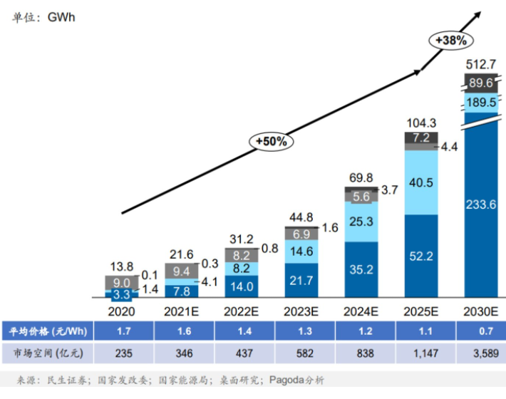 国家能源局数据显示,中国新型储能装机规模预计复合年均增长率为51%,抽水蓄能装机规模复合年均增长率预计为13%。而储能建设的大提速,一方面来源于双碳目标,另一方面则在于政策、技术、资本的多方合力。