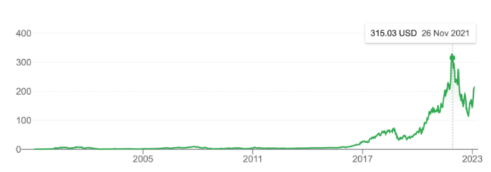 英伟达业绩的井喷式增长,与新业务拓展有着密不可分的关系。观察英伟达过去的股价变化,可以看到从1999至2015年期间,这家公司的股价一直都不温不火,到2015年其股价仅为4-5元美元。但2021年,该公司的股价一度飙升突破300美元(详见图1)。在2015-2021年期间,全球GPU市场发生了什么?