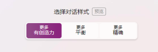 微软之前还为必应聊天推出了一个新功能,那就是用户可以选择对话样式,目前提供三种:更多创造力、更多平衡、更多精确。创造力使必应在回答问题时有更多回旋余地,而精确性则优先考虑事实。