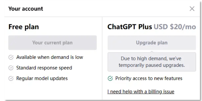 “因为需求量太大,我们暂停了升级服务”,这是4月5日ChatGPT停止Plus付费购买功能时给出的理由,当时距离它开通Plus功能仅仅2个月。