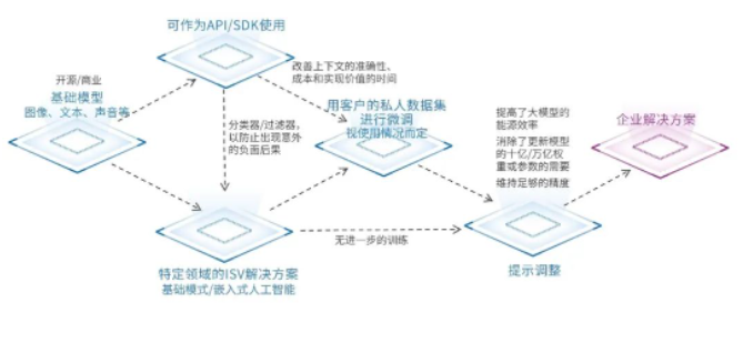 今天市场上行业主要玩家包括AI算力厂商、AI软件提供商以及AI行业应用厂商,典型的算力厂商诸如英伟达、Intel、浪潮、华为等;典型的AI软件提供商包括AWS亚马逊云科技、阿里云、百度、第四范式、华为云、商汤、腾讯云等。如下图所示,未来的AI产业,上游将以具备实力的大模型提供商为主,由ISV/行业应用解决方案商基于大模型为最终用户开发各场景的AI,最终落地到行业用户。这一产业变化将对不能及时投入新一代AI技术的厂商带来一定的冲击。此外,当前行业企业在该市场的角色主要是最终用户,随着技术的普及,行业头部企业也有望成为新一代AI技术的提供商。
