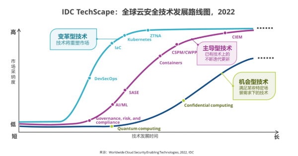 根据IDC统计,中国公有云安全市场规模从2018年3.76亿美金快速增长到2021年底9.11亿美金,年复合增长率达到了34.3%。IDC在2022年针对中国云安全产品和服务市场开展了一系列研究。举例来说,2022年,IDC发布了《中国云工作负载安全市场份额,2021:云原生与安全左移驱动技术持续创新》(CHC48497122)和《中国公有云托管安全服务市场份额,2021:责任共担,共筑云安全》(CHC48499222)报告。