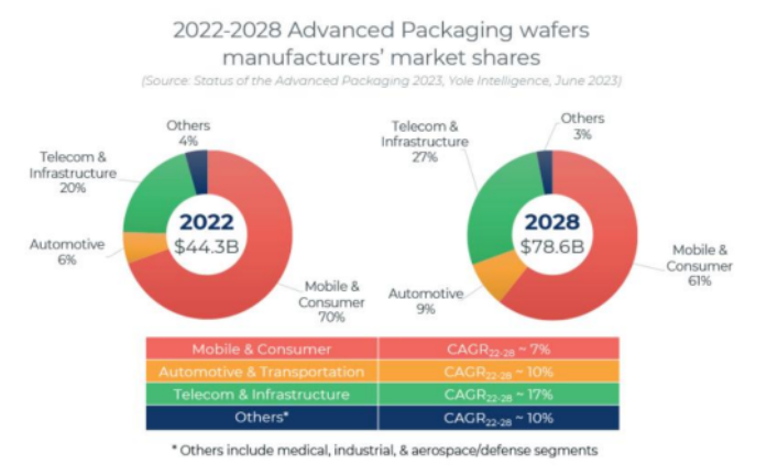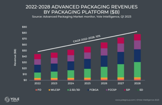 2022年到2028年先进封装市场年复合增长率将达10.6%。