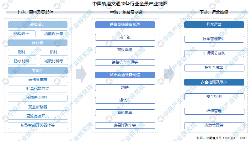 轨道交通装备产业链中,上游为轨道交通的设计和零部件制造,中游为轨道交通装备的制造,下游为运营维保包括列车运营及运营维保服务,为轨道交通行业的后市场。