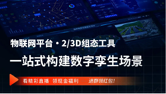 在这次直播中,我们会为您展示中服云的物联网开发平台和2D/3D组态工具,一站式教您完成数字孪生场景的搭建。(一学就会)