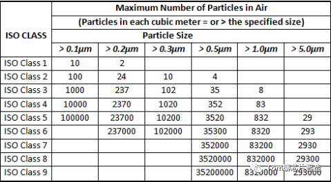 ISO 3:在每立方米空气中不超过1,000颗0.1微米的颗粒。