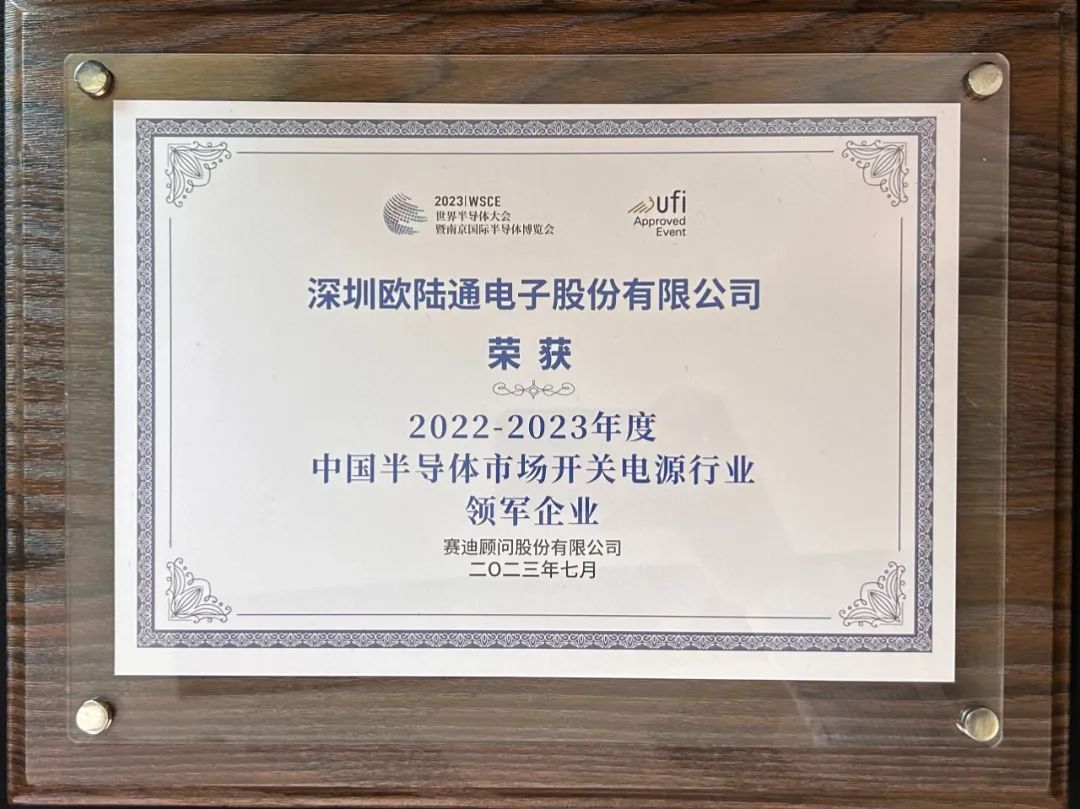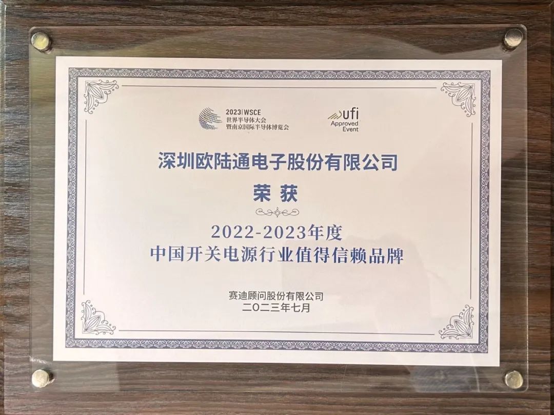 2023年7月19日-21日,2023世界半导体大会(WSCE 2023)在南京国际博览中心隆重召开。欧陆通凭借强大的产品实力及品牌影响力,荣获“2022-2023年度中国半导体市场开关电源行业领军企业”、“2022-2023年度中国开关电源行业值得信赖品牌”及“2022-2023年度中国高效能智能电源最佳产品”三项重量级荣誉。