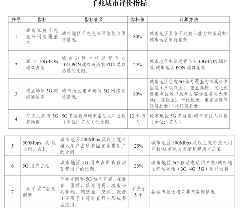 面向满足千兆城市评价标准的地级及以上行政区(以下统称城市),重点评估涉及以下方面: