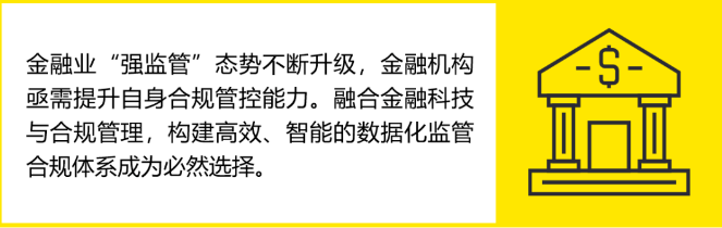 近年来,金融行业强监管态势升级,监管发布的业务管理制度规范日臻完善,持续强化合规监测前瞻性、穿透性、全面性,借助数据手段构建智能化合规管理能力,是提升金融机构合规管控水平的核心方向。