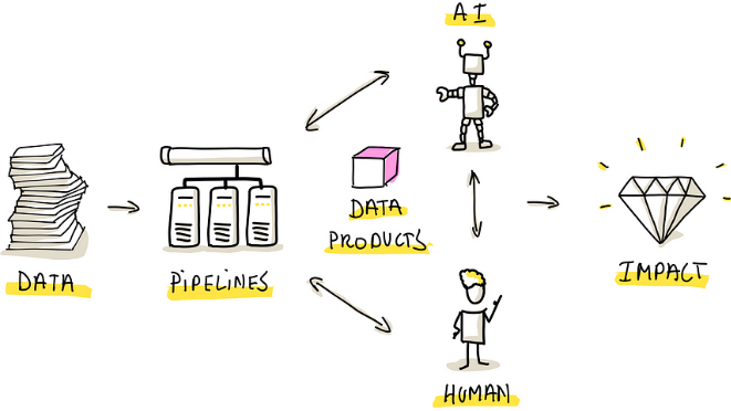 人:人在根据自动化管道和人工智能算法创建的数据产品做出正确决策方面发挥着关键作用。最终,这些决策会对组织产生影响。