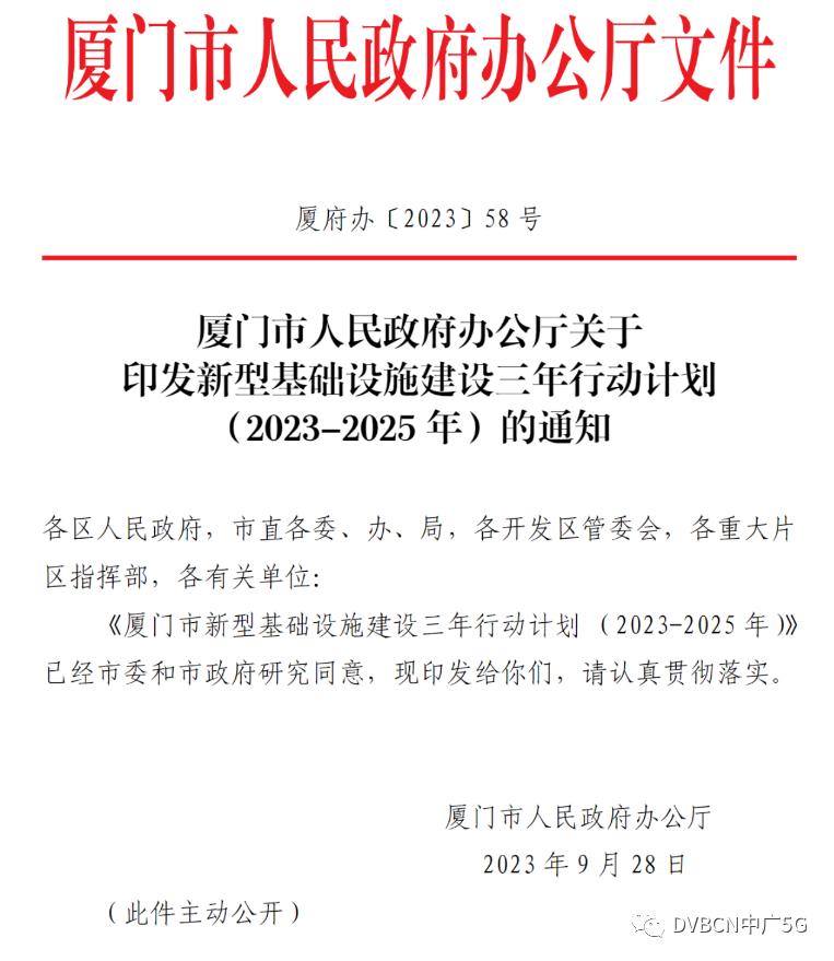 10月1日,福建省厦门市人民政府印发的《新型基础设施建设三年行动计划(2023-2025年)》已对外公示。
