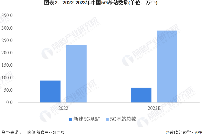 2023年,我国的5G投资将逐渐达到顶峰,并且国内5G基站数量的增长速度将趋于稳定。根据工信部的统计数据,截至2022年,我国新建了88.70万个5G基站,并且累计建成并开通了231.20万个5G基站。工信部表示,到2023年,将有60万个新的5G基站建成并开通,总数将超过290万个。根据GSMA的数据,中国大陆目前是全球最大的5G市场,到2022年底,5G连接数已经超过全球总量的60%。