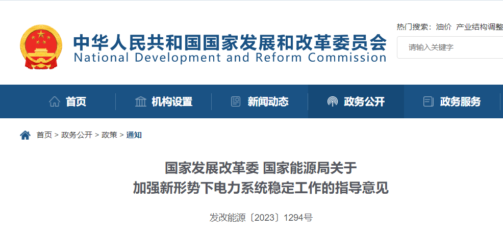 国家发展改革委国家能源局关于加强新形势下电力系统稳定工作的指导意见
