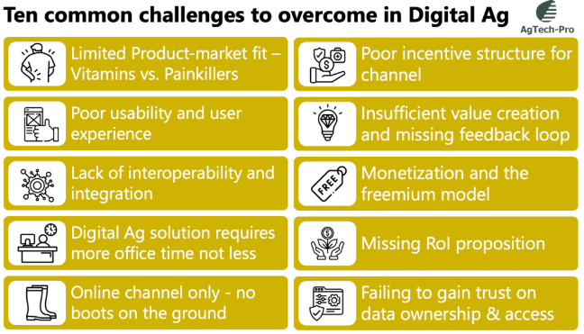 任何新产品成功的基本原则是实现产品与市场的匹配。这个概念的核心是产品是否能够解决问题或痛点,并满足未满足的需求。不幸的是,许多解决方案在优先考虑“好的附加功能”而不是“必备功能”时遇到了问题,特别是在数字农业这个仍在不断发展的领域,我们必须强调那些可以有效解决实际痛点的产品。这将有助于提高农民在数字农业领域的整体体验,可能导致更愿意使用强调“好的附加功能”的产品。