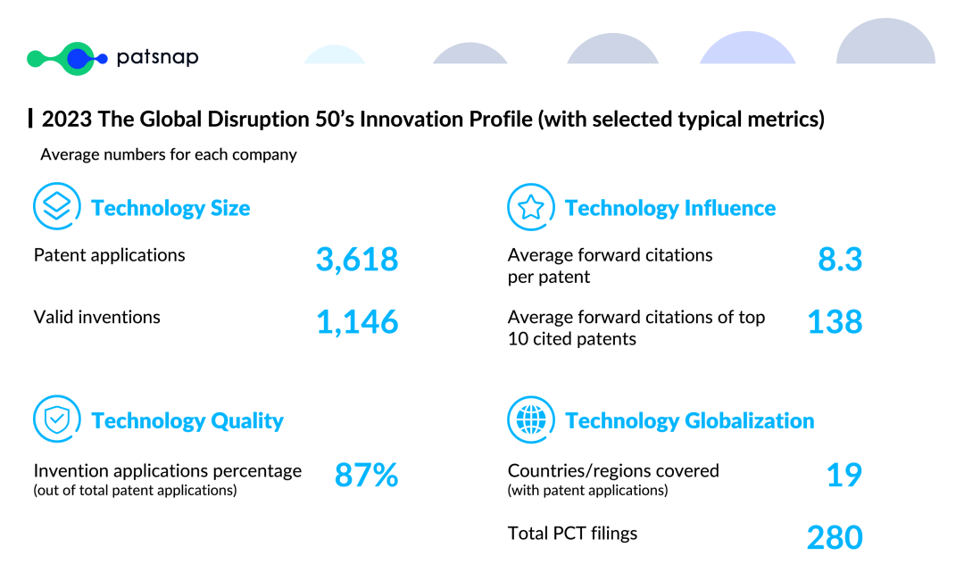 具体来看,一家全球科创新锐企业的典型“创新特征”是拥有约3600件专利申请,其中,发明专利申请约占87%;平均每件专利被引用达8次以上;平均在19个国家/地区布局了专利。