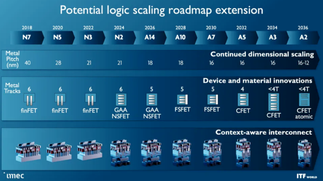 在2019年,IMEC在IEEE会议上展示了使用二维材料可以实现1纳米以下的工艺节点。他们展示了使用二硫化钼(MoS2)作为材料,制造出了具有微小特征尺寸的MOSFET,这为晶体管的极端缩放开辟了新的途径。MoS2是一种二维材料,这意味着它可以以稳定的形式生长,厚度仅为一个原子。最重要的是,在这个尺度上,MoS2具有原子精度。