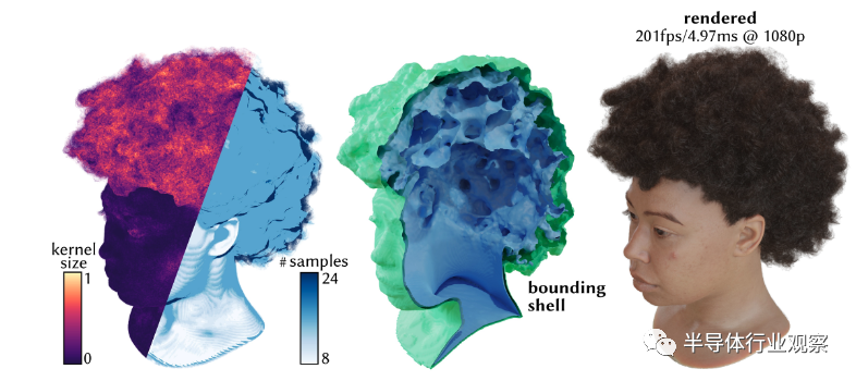 第二个重要研究是由Nvidia发表的Adaptive Shells for Efficient Neural Radiance Field Rendering。神经辐射场(Neural Radiance Field,NeRF)和3D GS类似,都是可以通过场景的多角度图片来完成场景的超高精度建模,并且其建模方式也是通过人工智能模型训练的方法来完成。NeRF和3D GS的主要不同在于,其建模方法是通过神经网络来完成,因此其渲染过程就是等价于神经网络的推理过程。NeRF出现已经有了数年,但是直到今年Nvidia的研究发表,才真正实现了GPU上高帧率(100-200fps)的高质量NeRF渲染,因此今年可望是NeRF渲染真正进入实用的开始。