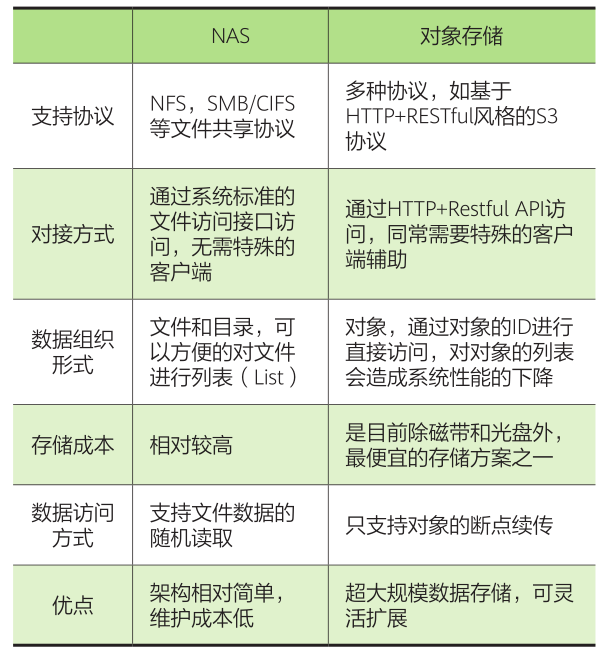 表:NAS和对象存储技术对比