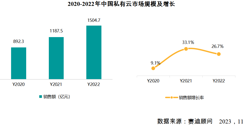 随着数字化转型的深入发展,云计算的技术和思想已渗透到现代IT基础设施的方方面面,具备一云多芯能力的云平台已成为构建新一代私有云的首选项。《报告》提到,在云计算发展政策引领和政企塑造数字化竞争新优势的带动下,以云为载体的现代化IT基础设施的作用更加凸显,私有云的整体市场规模呈稳步增长趋势,私有云系统平台发展整体呈现行业集中化和重点行业规模化发展的态势。