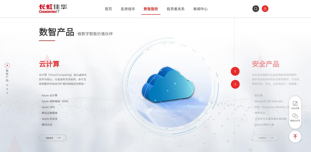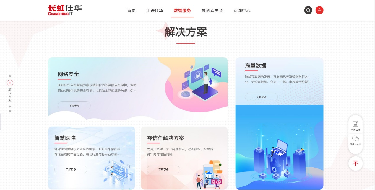 新版官网提供了更加全面的综合展示平台,合作伙伴和客户可以基于自身需求,更为便捷地了解长虹佳华数智服务能力和丰富的行业解决方案,达成有效的沟通和合作。共同实现通路共享,合作共赢的目标。