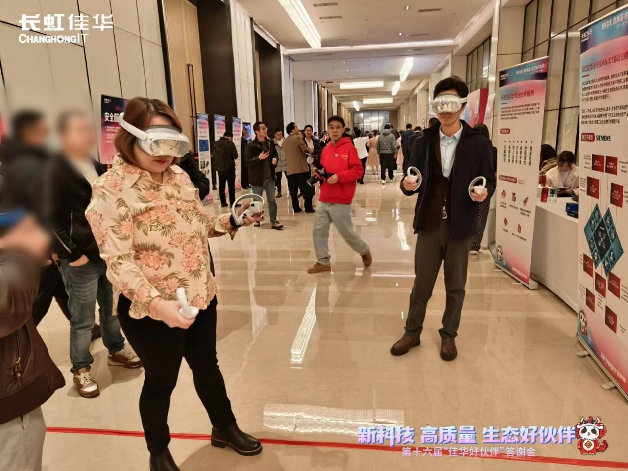 特色序厅是本届答谢会的亮点之一,全面展示了长虹佳华云生态服务平台、元宇宙多场景跨行业解决方案、金融工具、增值服务等高质的解决方案和企业级综合服务,吸引众多好伙伴的体验和好评,并与业务人员进行了深入地交流。不少好伙伴对长虹佳华优质的综合技术解决方案及数字智能产品组合解决方案表达了浓厚的兴趣和进一步深化合作的意愿。