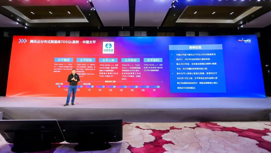 腾讯云数据库总经理王义成开启了本次大会的首场报告,王总在报告中提到,腾讯云数据库TDSQL在推动国产数据库技术发展的道路上取得了开拓式创新成就,在政务、金融等传统行业拥有超过4000家落地的实践经验,已助力30余家金融机构完成核心系统数据库替换,位居行业第一,为国产化数据库的发展和应用积累了宝贵经验。