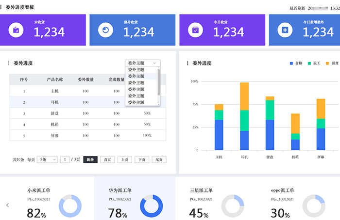 (智邦一体化ERP电脑端生产委外进度看板-局部图)