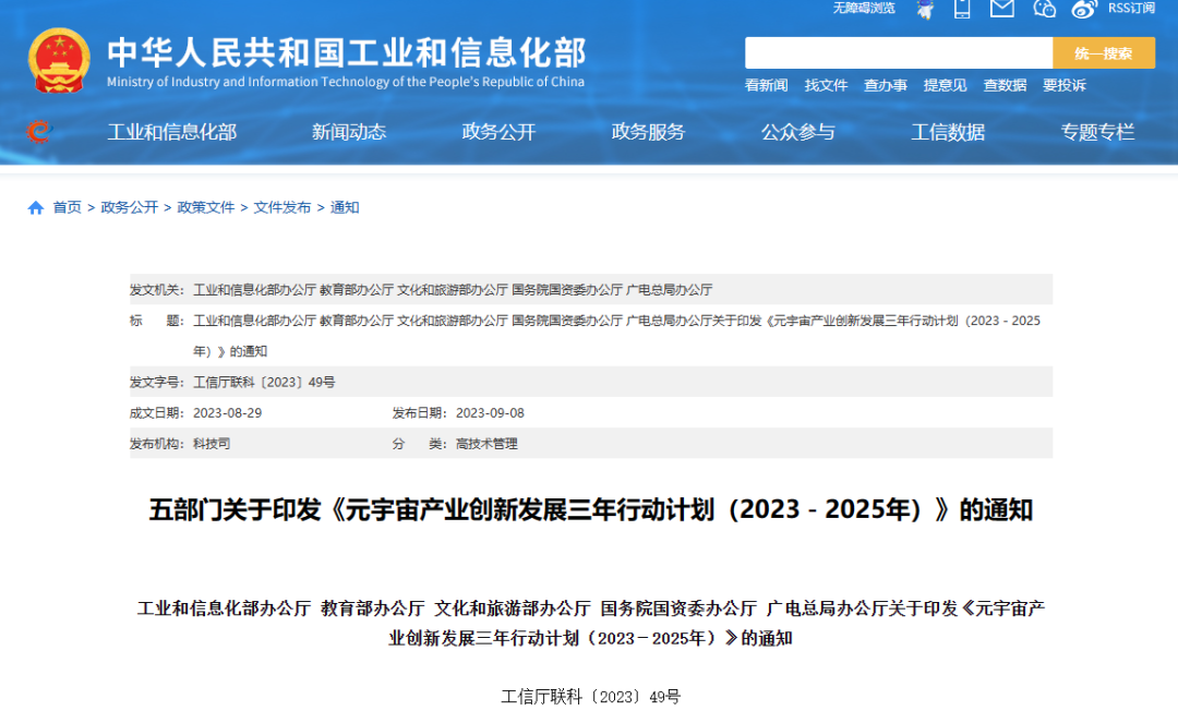 今年年初,工信部部长金壮龙在接受采访时表示,将积极培育新兴产业和未来产业。制定实施培育未来产业的政策文件(如元宇宙三年计划),推动人工智能、人形机器人、元宇宙、下一代互联网、6G、量子信息、深海空天开发等前沿技术研发和应用推广。