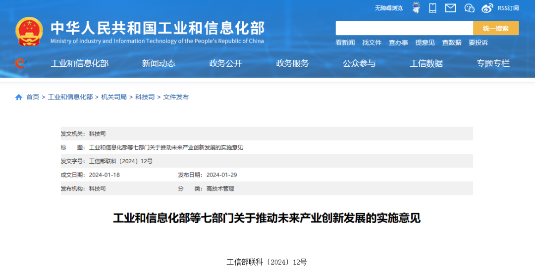 近日,工信部、教育部、科学技术部、交通运输部、文化和旅游部、国务院国有资产监督管理委员会、中国科学院七部门发布《推动未来产业创新发展的实施意见》。